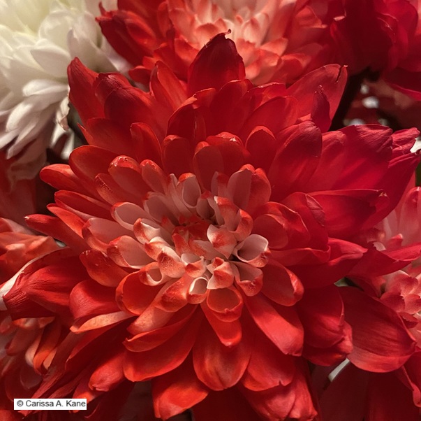 the flowers, still bright,