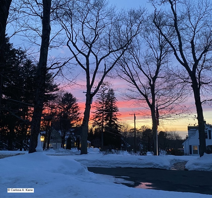Late afternoon the other day as sunset was moving in, the sky displayed a beautiful spread of colors in between the homes and trees, utility poles and power lines. Through all the obstacles intruding on the view, there was light, not only persevering, but also bringing hope, showing up in shades of glory, working among its surroundings, in a most remarkable way.