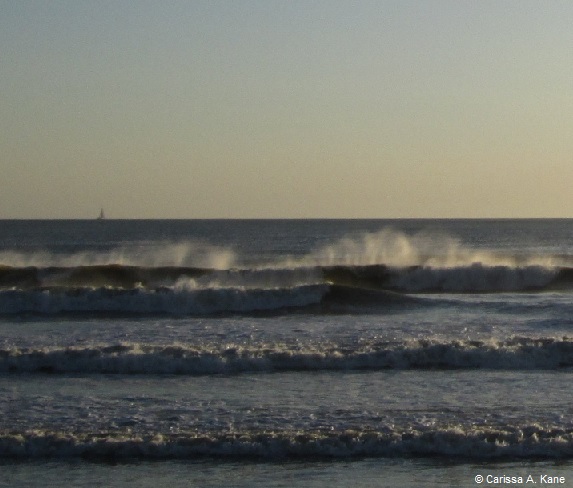 As the waves rose to the height of their ascent, each carried a line of mist as the force of the wind surfed across the top. Water and wind driving against each other, competing, wave after wave. Which would win? … As if only one could.