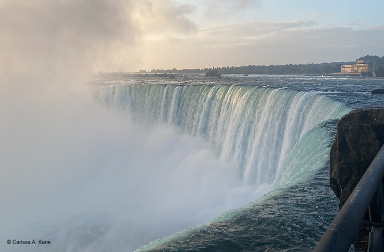 Having stood next to the falls of Niagara and experiencing with awe the rainbows and mists as well as their thunderous rage, even in a controlled setting, the words of Dr. Seuss, “So be sure when you step, Step with care and great tact. And remember that life’s A Great Balancing Act…”, came to mind upon seeing the painting below.